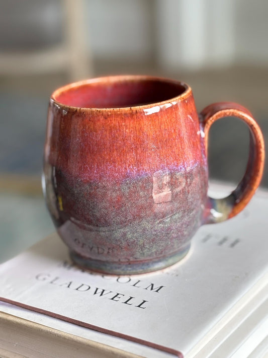 Handmade Ceramic Mug – Wheel Thrown Pottery Cup with Drippy Orange, Pink and Green Glaze